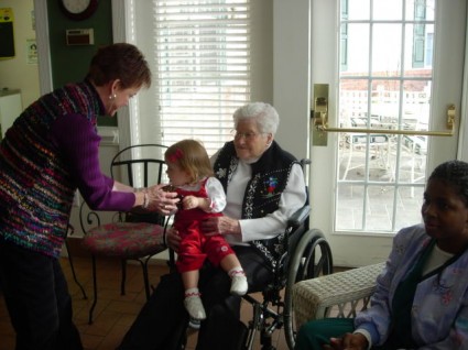 Yes! Bailey’s still alive and kicking. I have many pictures to prove it. We’ll start with Bailey’s visit with the Grandparents last month. Enroute, Bailey stopped by to see her Great Grandmother “Nana” Lunsford: